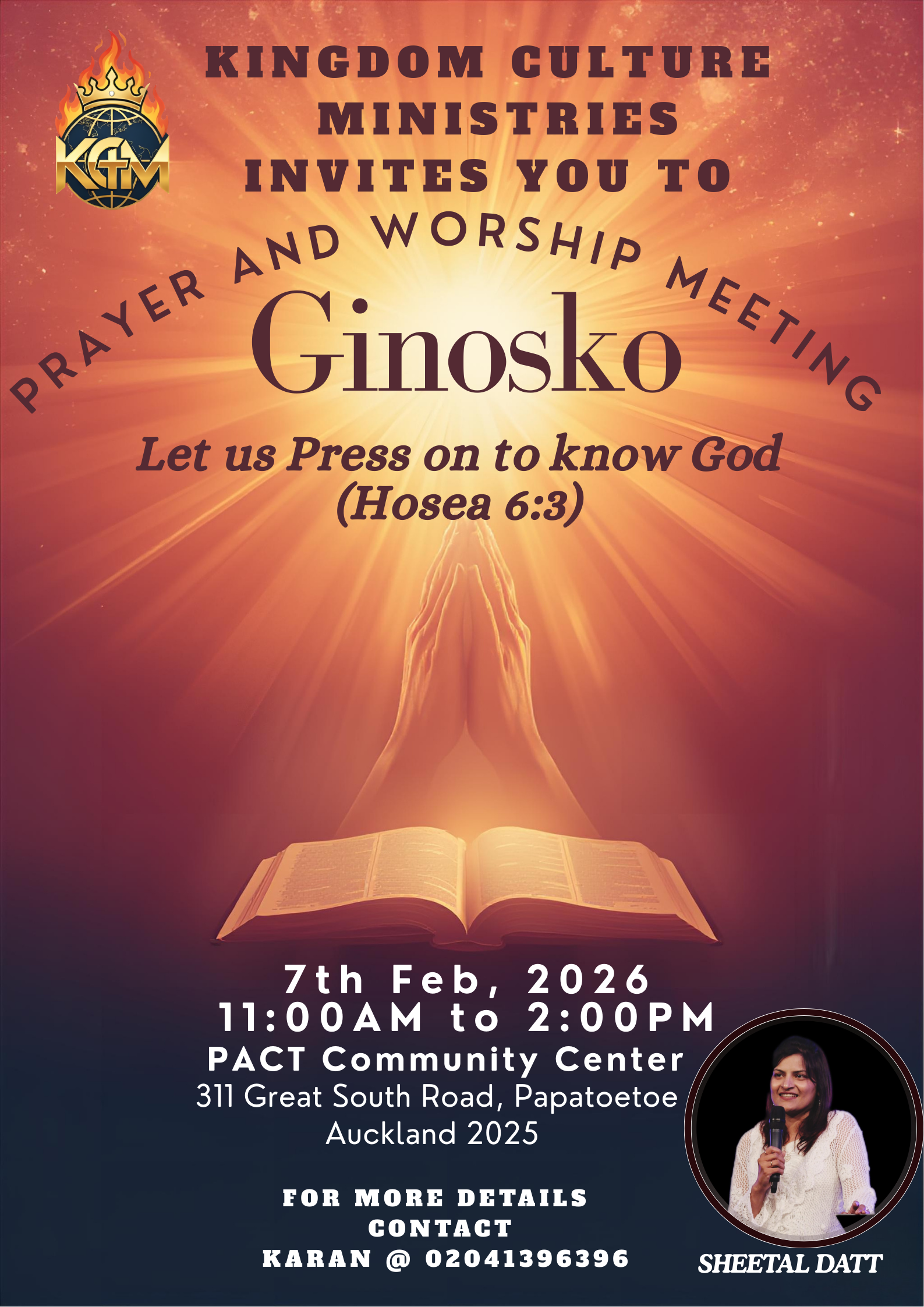 Ginosko means to know God intimately. Hosea 6:3 says Let us press on to know the Lord. Join us in person for an uplifting time of Prayer and Worship on 7th Feb, from 11:00AM to 2:00PM to know Him intimately. This gathering is an invitation to encounter God, and to grow in deeper intimacy with […]